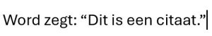 In Word zijn de regels voor aanhalingstekens niet de onze. Citaten starten steeds met dubbele hoge aanhalingstekens. Dus gaat iedereen een citaat beginnen met twee losse komma’s. Is niet nodig: begin een citaat gewoon met een enkel citaat teken “zoals deze.
