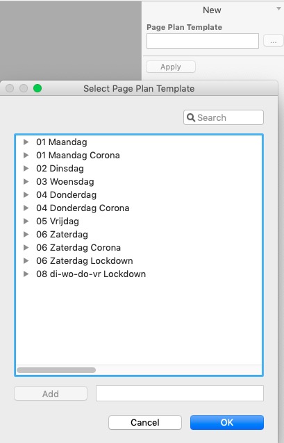 Klik op het knopje … en kies een voorgebakken paginaplan: