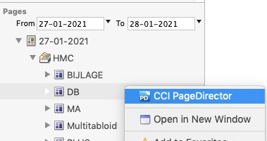 Open in NewsAccess in de linkernavigatiekolom de datum en het product waar je de pagina’s wilt maken en kies met een rechtsklik voor CCI PageDirector: