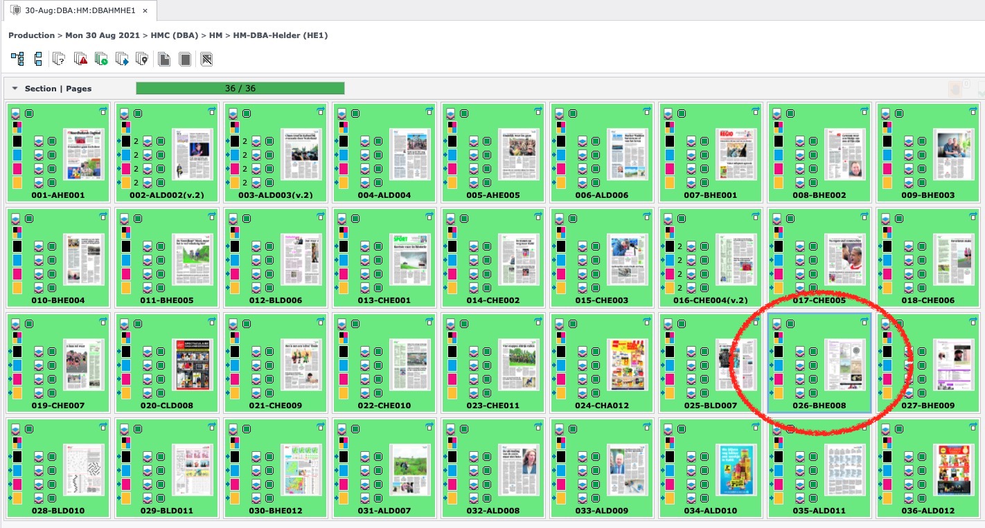 Daarachter staat BHE008 – onze indicatie: Katern B (regio) Editie HE (HEL) en pagina 8 van dat katern: