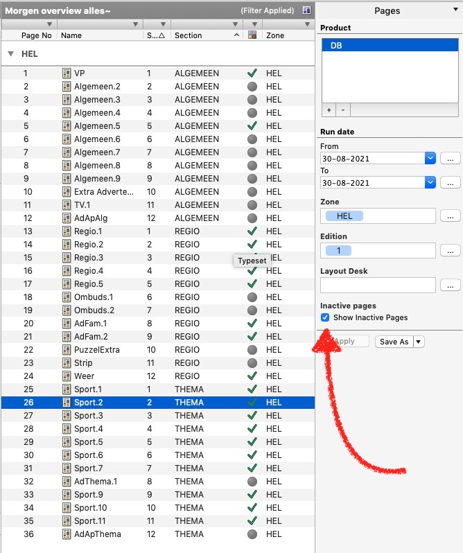 Met een vinkje bij Show Inactive Pages heb ik hier voor het beeld hier even het volledige overzicht, inclusief de inactieve source pagina’s