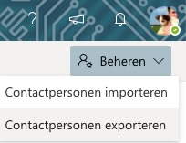 Stap 3: Klik rechtsboven op het ‘Beheren’ knopje en kies voor Contactpersonen exporteren