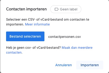 Zoek zelf een manier om csv bestanden met contactpersonen te importeren.