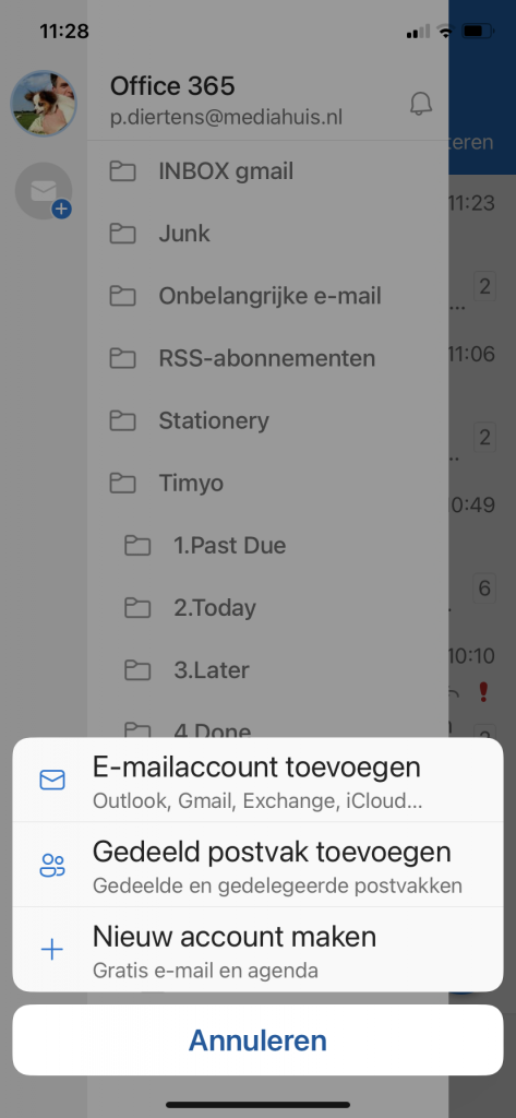 Op je iPhone kun je niet zomaar een groepsmailbak toevoegen aan je mail account in iOS Mail