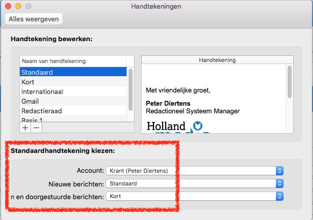 Klik onderin welke handtekening je bij welk account wilt zetten.