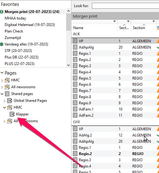 Heb je een geschikte pagina waar andere edities ook hun voordeel mee kunnen doen? Sleep die vanuit het NewsAccess paginaoverzicht naar de Shared Pages > HMC > Klapper aan de zijkant. Hoe meer keuze, hoe beter.