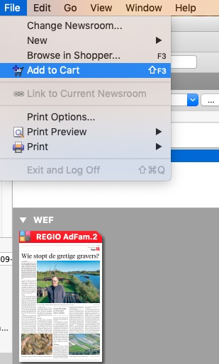 Teveel muis-acrobatiek? Je kunt ook via de shopper. Selecteer de pagina in de Klapper, kies onder File>Add to Cart:
