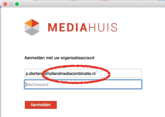 (openen met Control-klik) – start je Outlook opnieuw op en meld je aan met je Mediahuis mailadres en je wachtwoord.