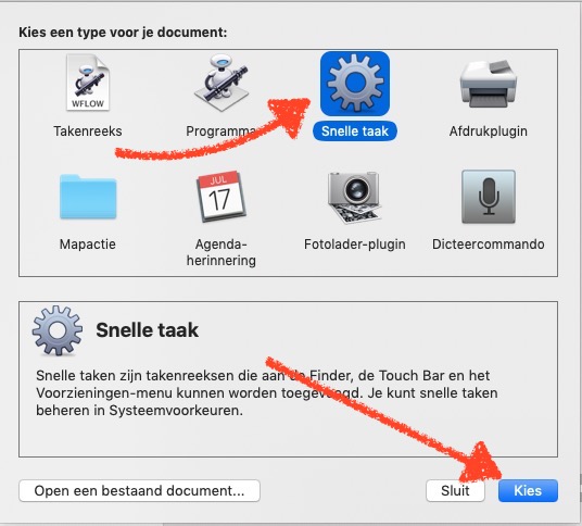 Dan : Command- S (Archief > Bewaar) en geef je snelle taak een naam: