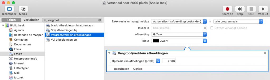 De mogelijkheden hier zijn natuurlijk eindeloos. Wil je beelden snel verschalen tot bijvoorbeeld 2000 pixels (langste zijde):