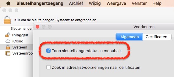 Ga naar de voorkeuren van het programma Sleutelhangertoegang: