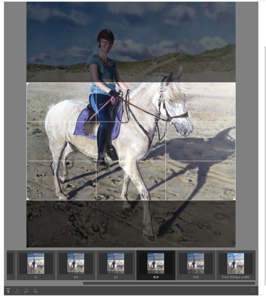 Je kunt uit een staande foto het belangrijkste deel halen door de focus-point te verschuiven op de eerste base-foto in de strip. Klik op de plek waar je die bulls-eye wilt hebben.