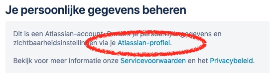 Daar kun je klikken op je Atlassian profiel: