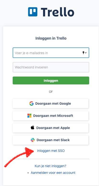 Kies voor Inloggen met SSO (Single Sign On)
