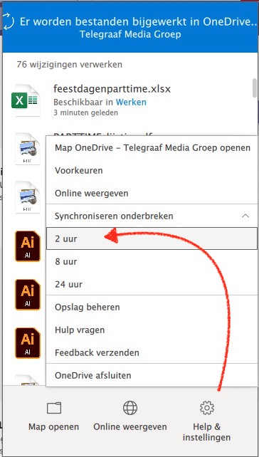 In de tijd dat je Mac sliep, is er een hoop gedaan – ook en vooral in OneDrive. Als je het MacBookje weer opent zal de OneDrive extensie als een dolle proberen de achterstand in te halen. Syncen als een malle vraagt veel van je netwerk bandbreedte.