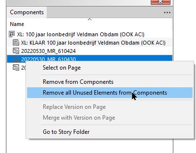 Klik iets van het artikel aan, klik rechts en Remove all Unused Elements from Components.
