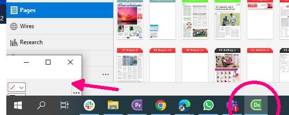 Het programma is actie een voorop (vage vierkantje om icoon in taakbalk), maar het venster ervan zit wel op een heel lastige plek.