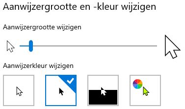 Links in datzelfde paneel vind je de opties voor Muisaanwijzer. Die kun je met een schuifje iets groter maken en misschien zwart in plaats van wit.