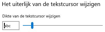 Toets WIN-cur en ga naar Tekstcursor. Onderin staat een schuifje om de tekstcursor iets dikker te maken.