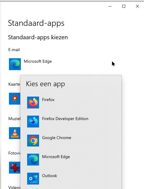 Belangrijk is om de standaard programma’s in te stellen. Klik op een link in je mail en de juiste browser opent, dat werk.