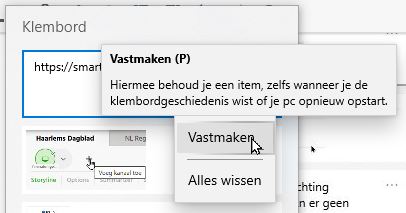 Deze klembord historie blijft tot een volgende herstart beschikbaar.
