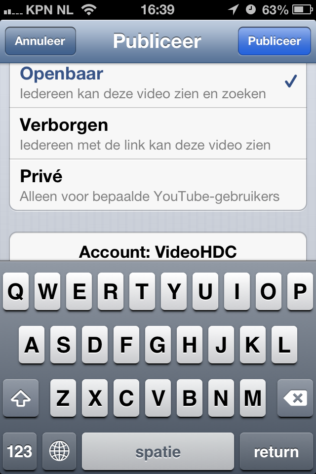 In afwachting van een eigen oplossing kunnen we YouTube gebruiken voor video’s, geschoten (en gemonteerd) met een iPhone. Daarvoor is door de internet redactie een speciale YouTube account aangemaakt.