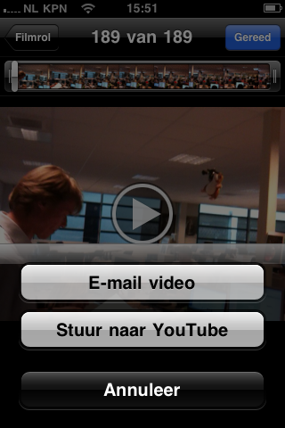 Vanuit je Foto’s > Filmrol bekijk je het filmpje dat je wilt uploaden. (Liefst onder wifi natuurlijk, zie Kraanwater en hip flesjeswater – Wifi en G3 en Hotspot met KPN)