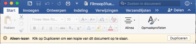 Kijk maar: je open een word bestand vanuit Outlook en dit staat er bovenin: